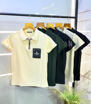 Balmai n Paris Imported Zipper Black Collar Neck Premium Polo T-shirt F3114-B2