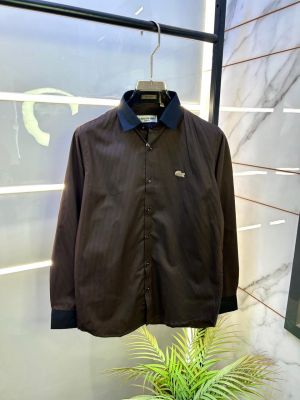 Lacost e Logo Lining Dark Brown Premium Oxford Lycra Shirt F3224-BR