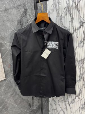 Balmai n Paris Logo Black Premium Shirt With Brand Box Packing And Carry Bag F3076-BL