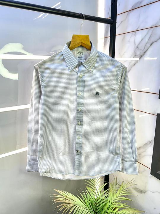 Brooks Brothers Grey Micro Checks Oxford Lycra Premium Shirts F2934-GY