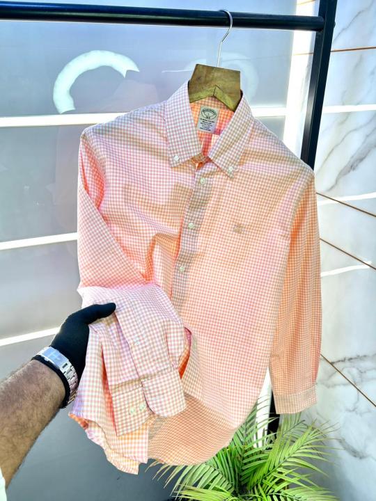 Brooks Brothers Orange Micro Checks Oxford Lycra Premium Shirts F2934-OR
