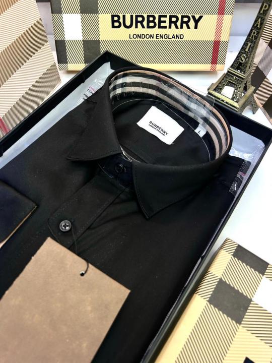 Home Shirts Burberr y Black Premium Embroidery Logo Shirt With Brand Box Packing And Carry Bag F3451-BL