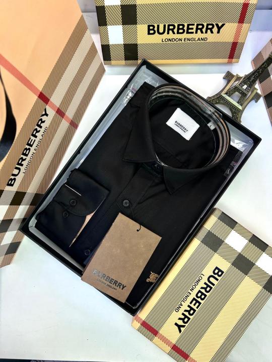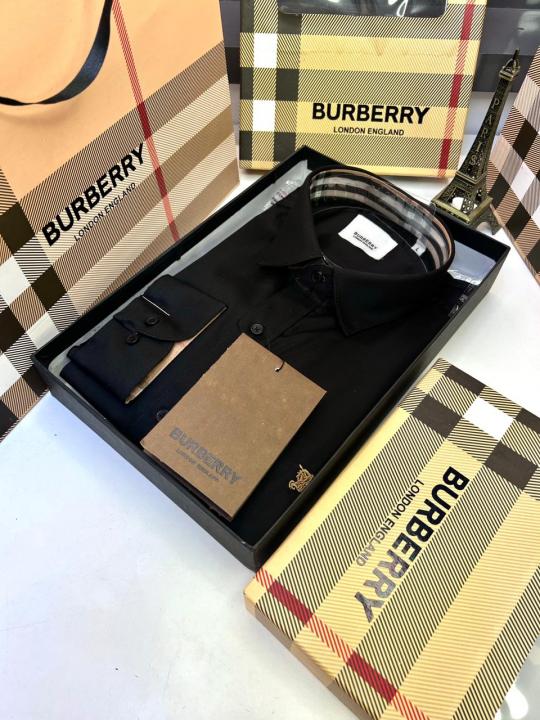 Burberr y Black Premium Embroidery Logo Shirt With Brand Box Packing And Carry Bag F3451-BL