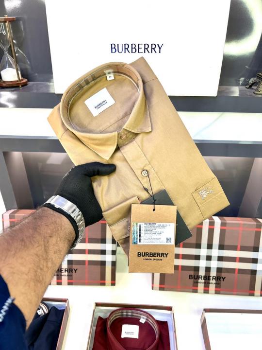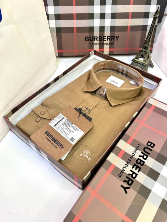 Home Shirts Burberr y Khaki Premium Shirt With Brand Box Packing and Carry Bag F1946-KH