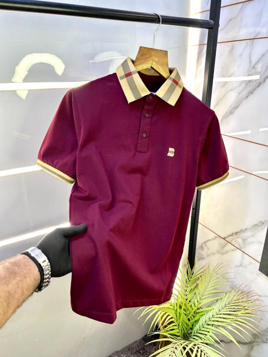 Home T-Shirts Burberr y Logo Maroon Collar Neck Premium Polo T-shirt F2593-MA