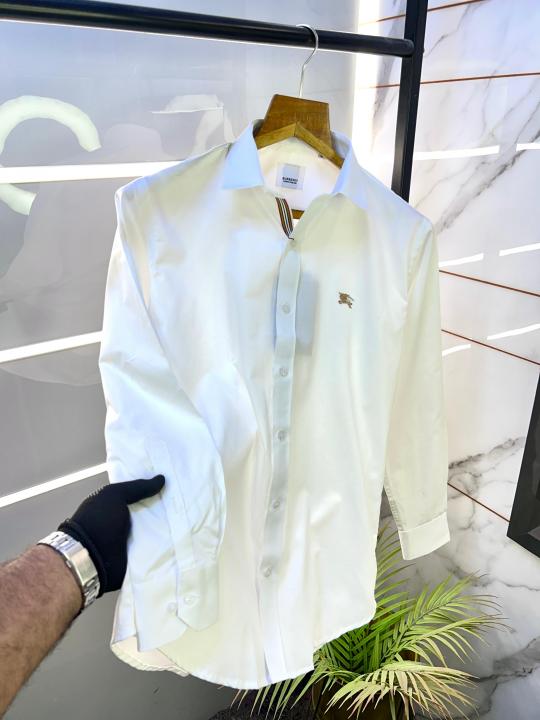 Burberr y White Embroidery Logo Premium Shirt With Brand Box Packing and carry bag F2713-WH