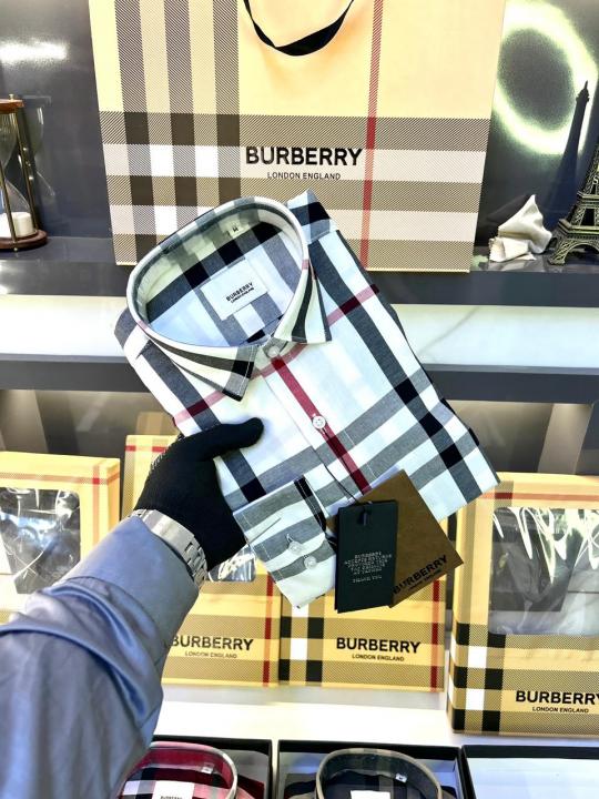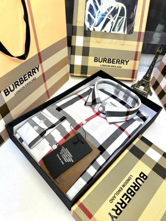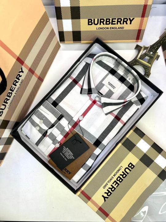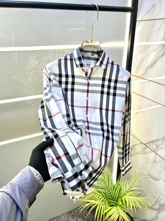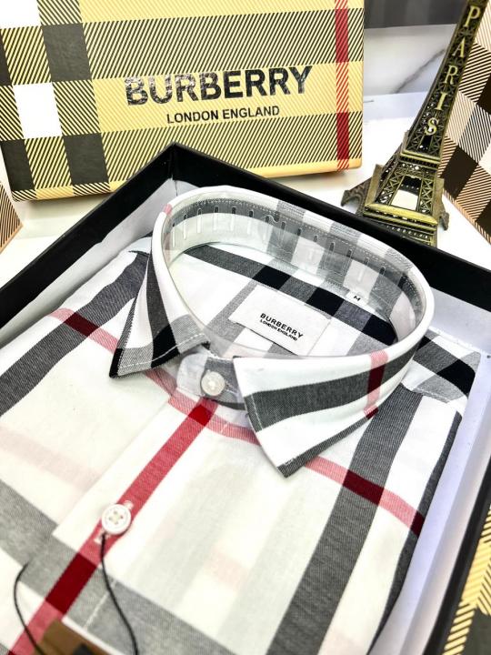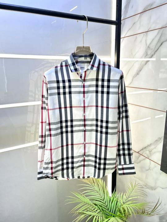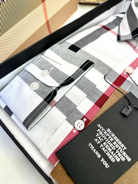 Home Shirts Burberr y White Premium Checks Shirt With Brand Box Packing and Carry Bag F2981-WH