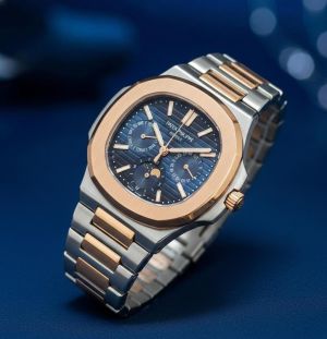 Patek_philippe Nautilus Steel Sun Moon 2Ton-Blue