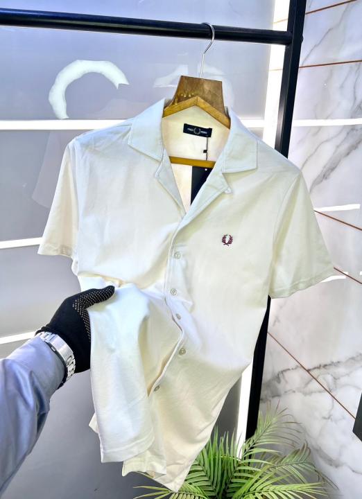 Home Shirts Fred Perry Imported White Half Sleeves Premium Shirts F2861-WH