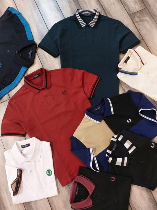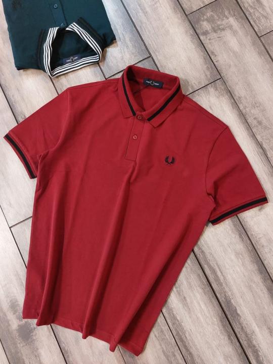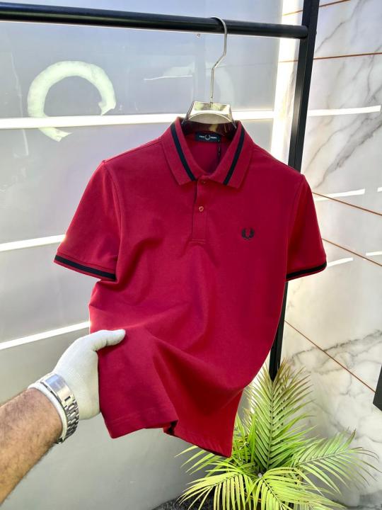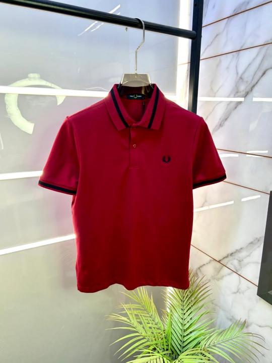 Home T-Shirts Fred Perry Red Polo Premium Collar Neck T-shirt F3463-RE