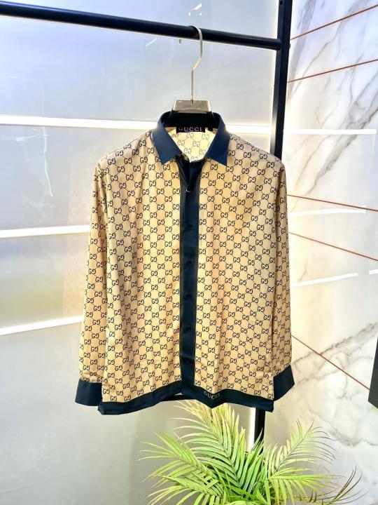 Home Shirts Gucc i Brown Monogram Premium Shirt With Brand Box Packing And Carry Bag F3207-BR