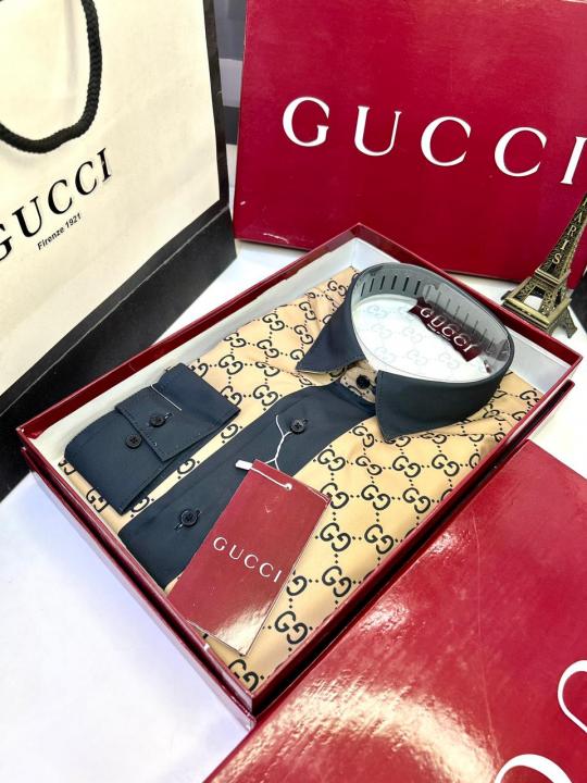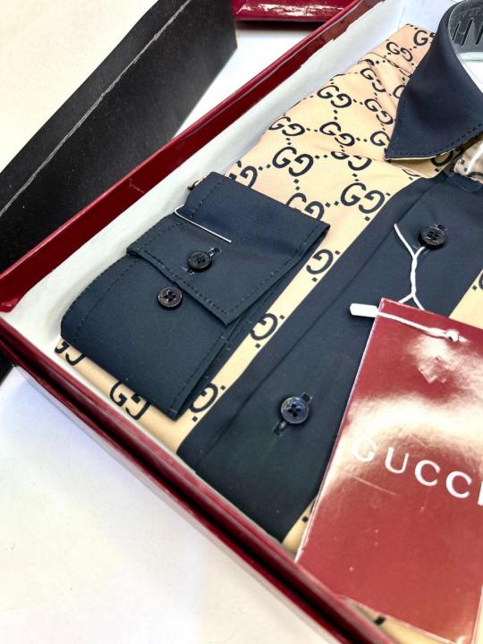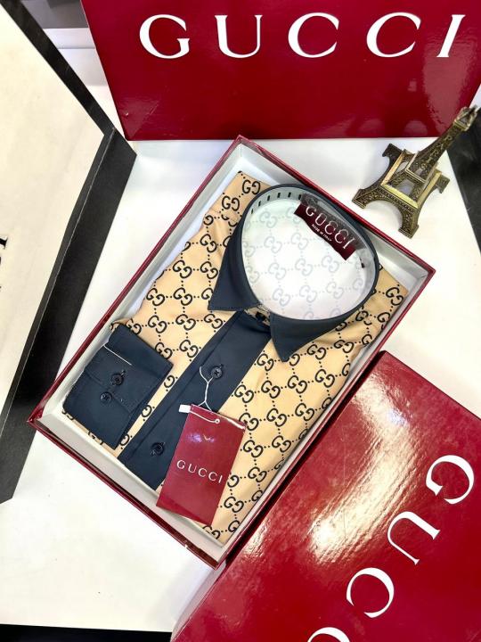 Gucc i Brown Monogram Premium Shirt With Brand Box Packing And Carry Bag F3207-BR