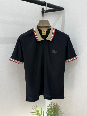 Burberr y Black Embroidery Logo Premium Collar Neck Polo T-shirt With Brand Box Packing F3582-BL
