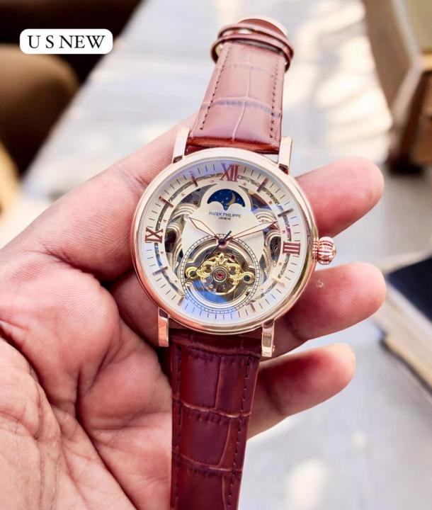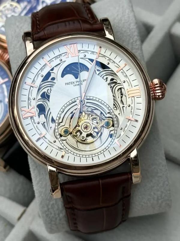 Patek Philipp e Premium Leather Sunmoon Brown White Dial