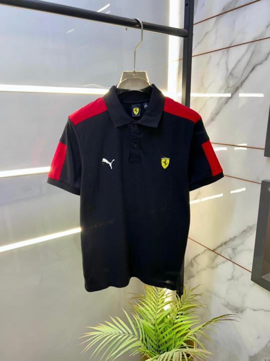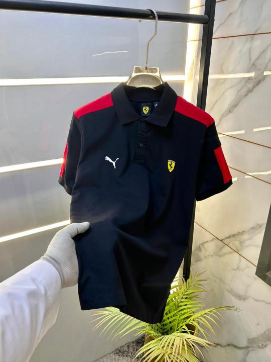 Home T-Shirts Pum a Ferrari Edition Polo Premium Black Collar Neck T-shirt F2953-BL