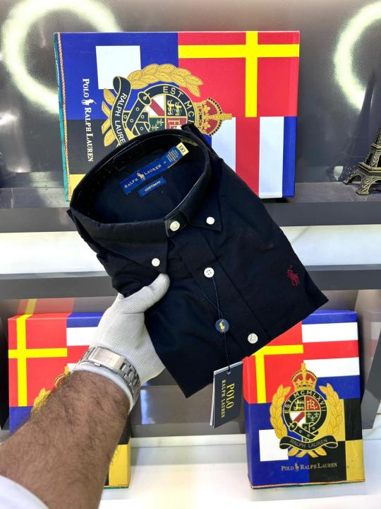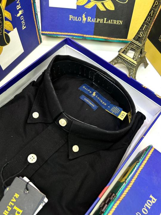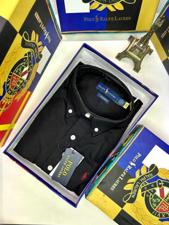 Home Shirts Ralp h Lauren Black Embroidery Logo Premium Shirt With Brand Box Packing F2891-BL