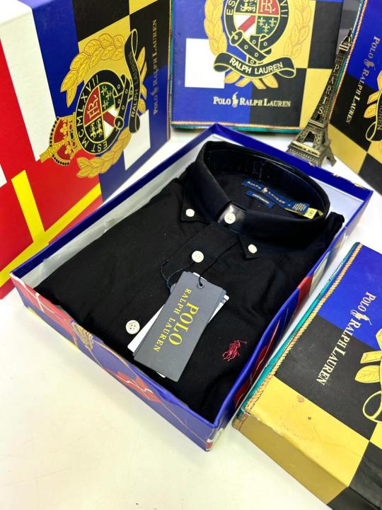 Ralp h Lauren Black Embroidery Logo Premium Shirt With Brand Box Packing F2891-BL