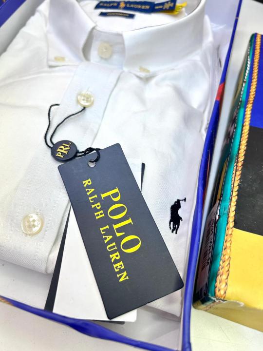 Ralp h Lauren White Embroidery Logo Premium Shirt With Brand Box Packing F2891-WH