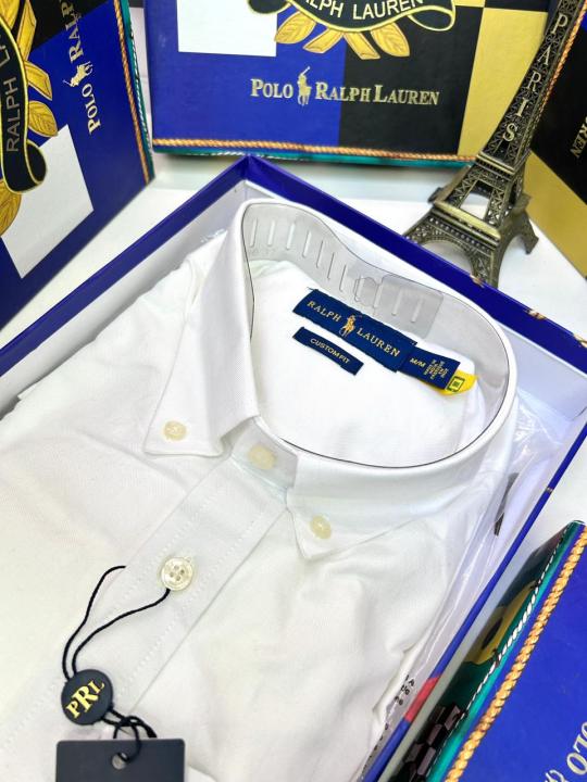 Home Shirts Ralp h Lauren White Embroidery Logo Premium Shirt With Brand Box Packing F2891-WH