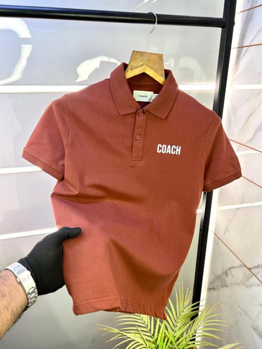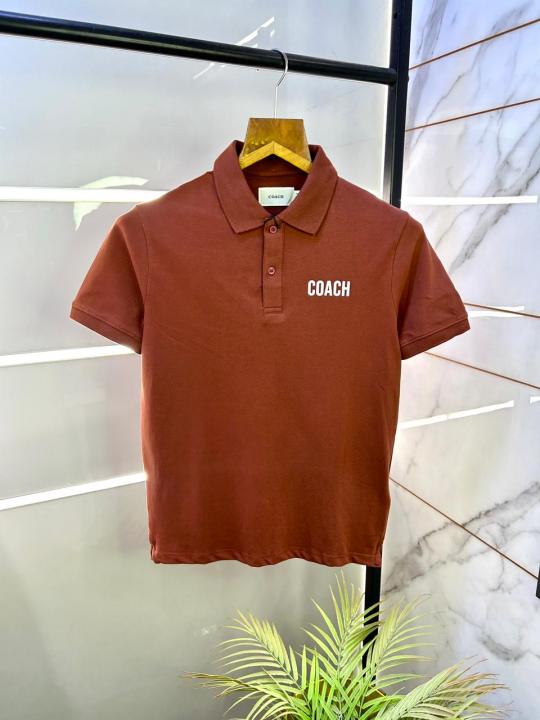 Home T-Shirts Sale Coac h Brown Back Print Premium Collar Neck Polo T-shirt F2993-BR