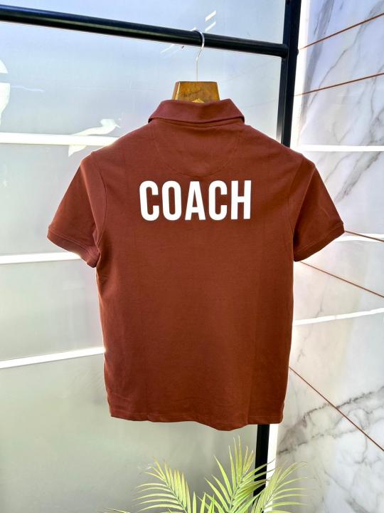 Sale Coac h Brown Back Print Premium Collar Neck Polo T-shirt F2993-BR