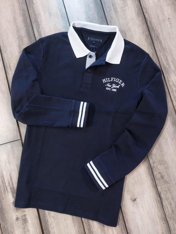 Tommy_Hilfiger Navy Polo Neck Full Sleeves Premium Collar T-shirt F3399-NY