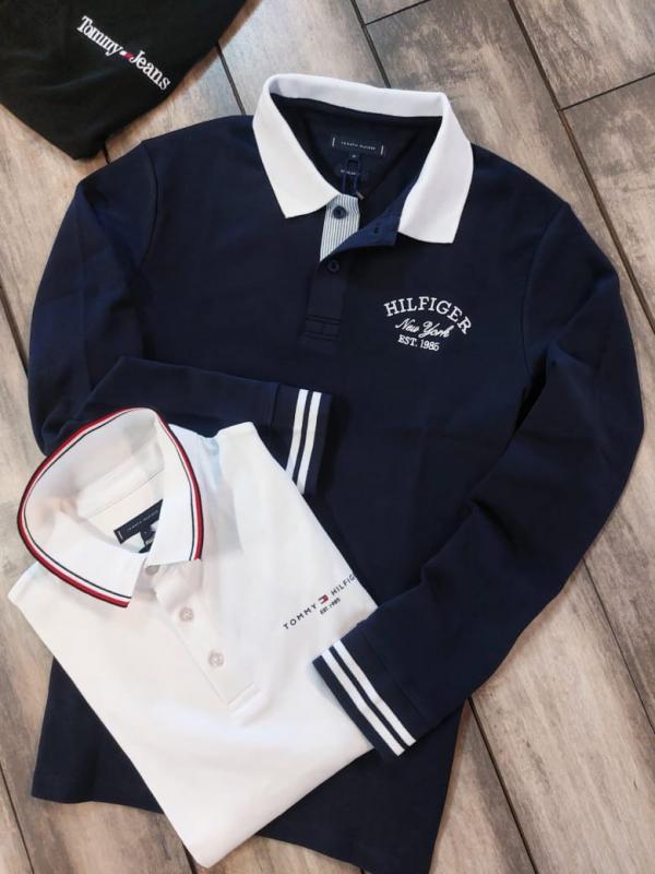 Tommy_Hilfiger White Polo Neck Full Sleeves Premium Collar T-shirt F3399-W1