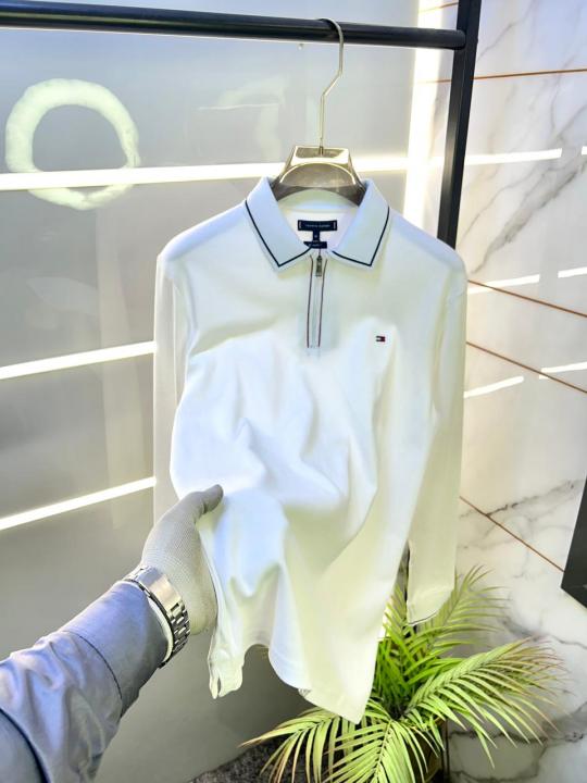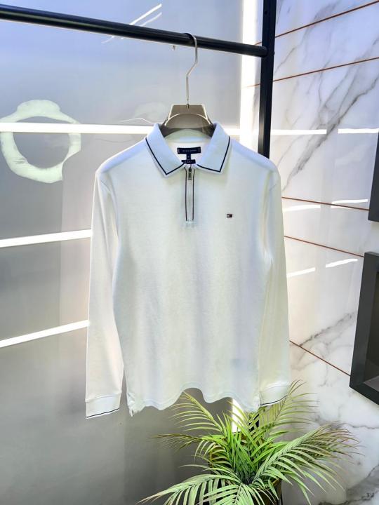 Home T-Shirts Tommy_Hilfiger White Polo Neck Full Sleeves Premium Collar T-shirt F3399-W1