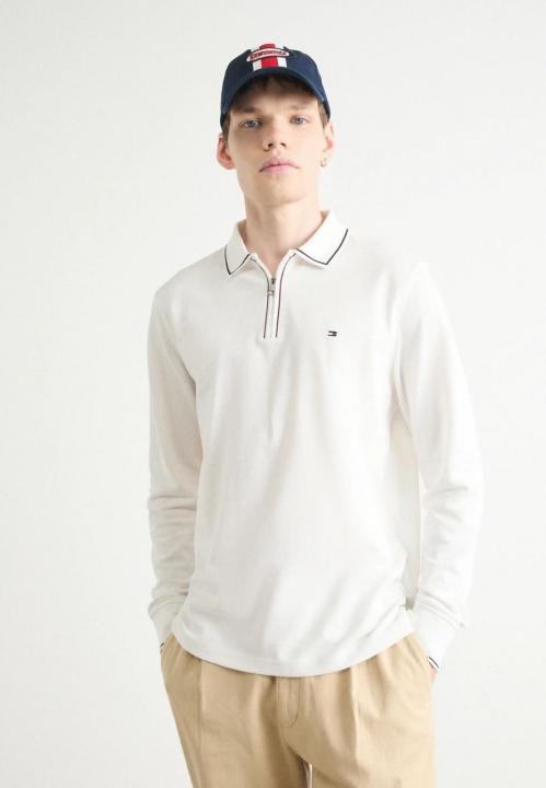 Tommy_Hilfiger White Polo Neck Full Sleeves Premium Collar T-shirt F3399-W1